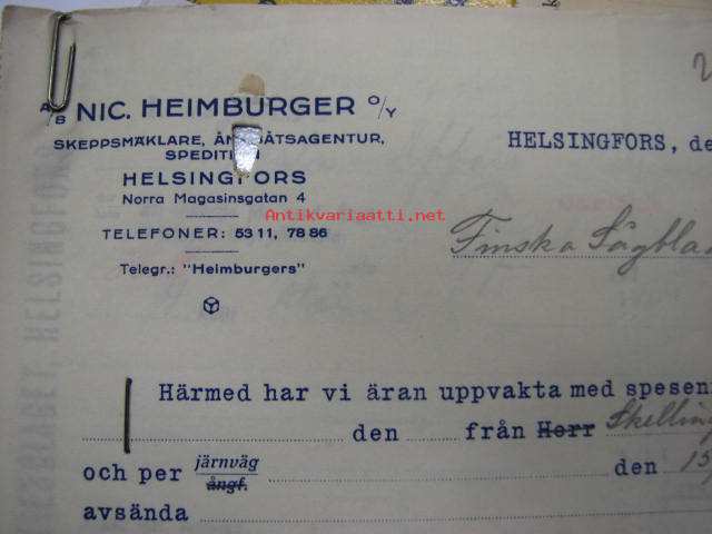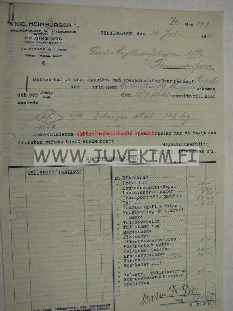Nic Heimburger Oy AB, Helsingfors 16.7.1925