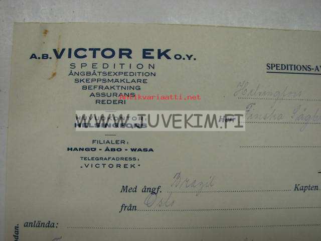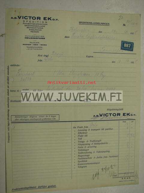 Viktor Ek Oy AB, Helsingfors. Dokument 22.10.1925