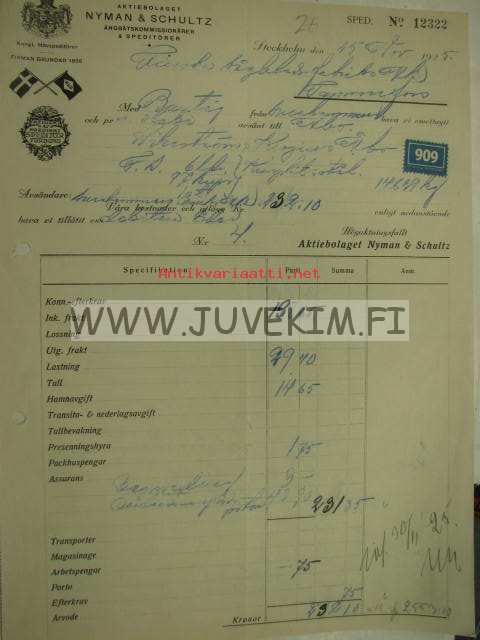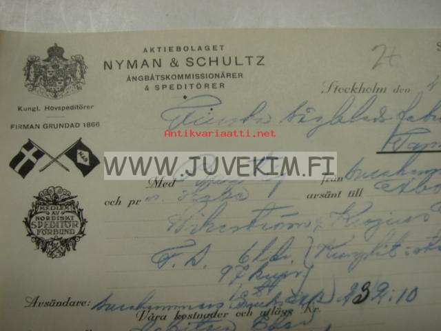 Aktiebolaget Nyman & Schultz Stocholm 25.11.1925 -dokument