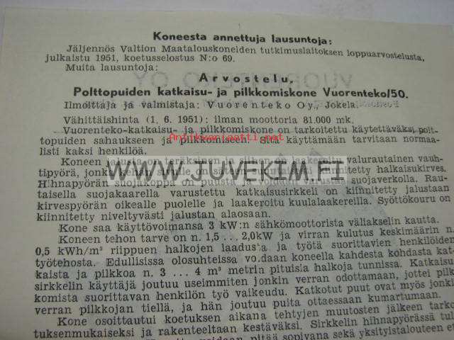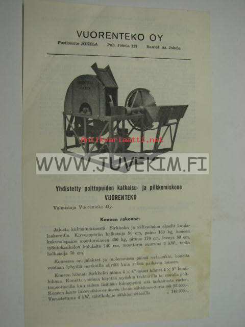 Vuorenteko Oy polttopuiden katkaisu- ja pilkkomiskone -myyntiesite