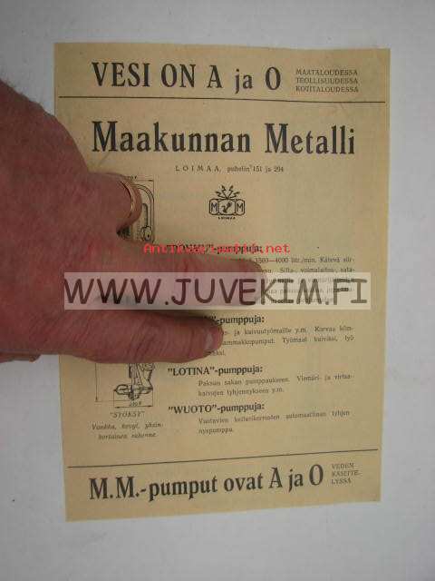 Maakunnnan Metalli Oy, 1915 x 21 cm.