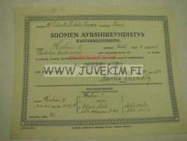 Suomen Ayrshireyhdistys Lehmä "Hulmu III", omistaja Hannes Palmroth, Partola, Tampere -kantakirjatodistus 1923