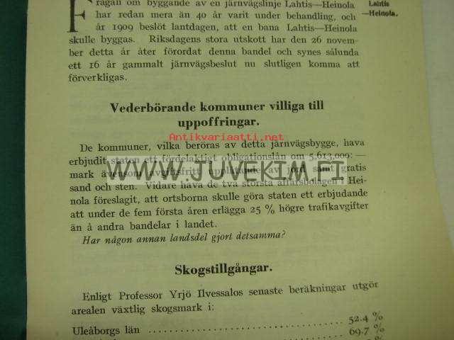 | Saatavilla | 1 kpl | | Julkaisuvuosi | 1925 | | Sivuja | 8 | | Kunto | K3 | | Sidonta/painoasu | Nidottu (pehmeäk.) | | Kielet | Ruotsi |