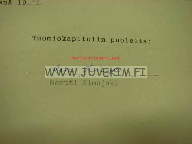 Vaaliehdotus kappalainen Unto Tolvas kirkkoherran virkaan... 1969 -allekirjoitus Martti Simojoki
