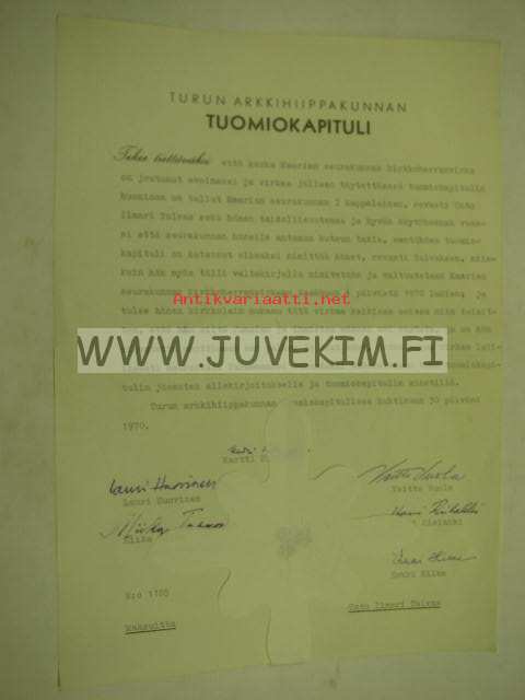 Turun arkkihiippakunnan tuomiokapituli, 197021 x 30 cm.
