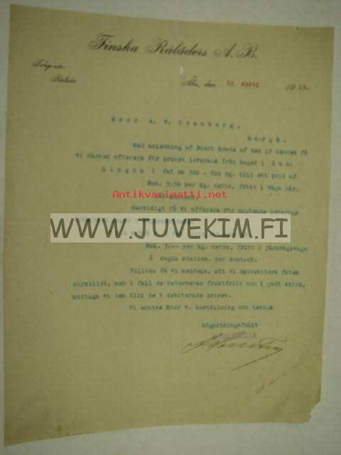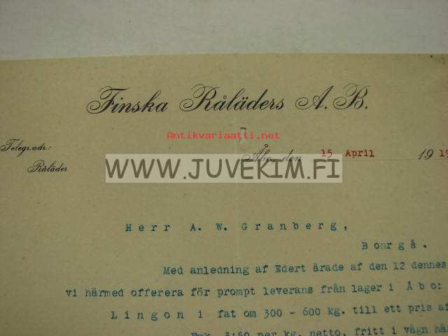 Finska Råleders Ab, Åbo 15.4.1919 -asiakirja