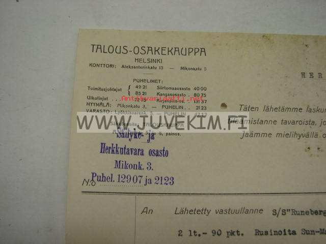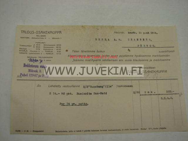 Talous-Osakekauppa, Helsinki 12.6.1924 -asiakirja