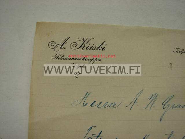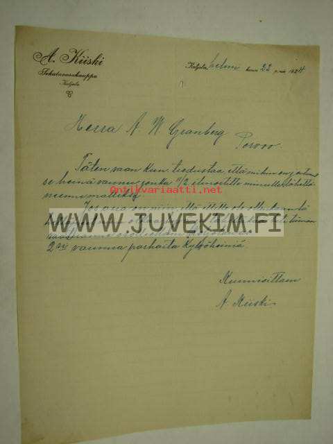 A. Kiiski Sekatavarakauppa, Koljola 22.2.1924 -asiakirja