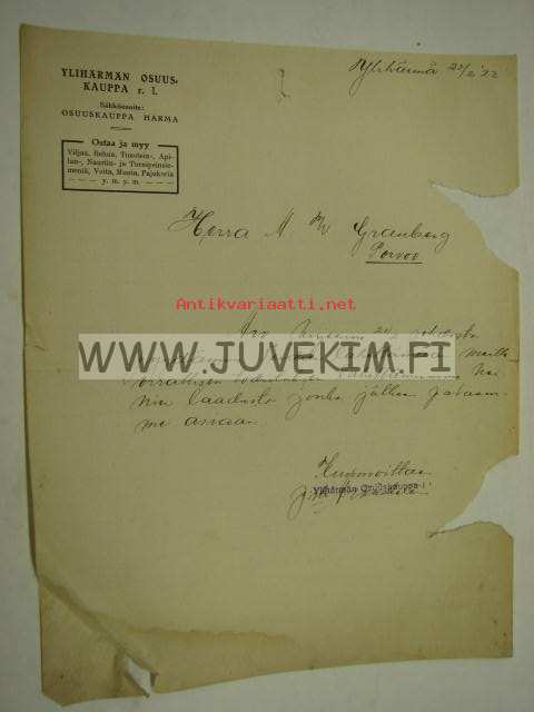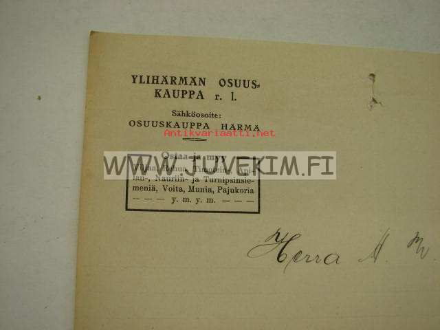 Ylihärmän Osuuskauppa, Härmä 23.2.1922 -asiakirja