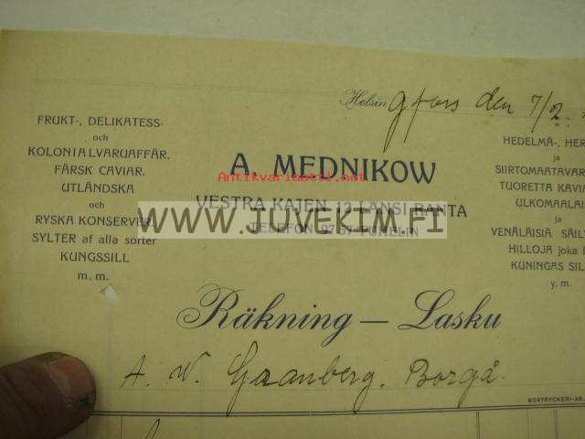 A. Mednikow, Helsinki 7.2.1923 -asiakirja