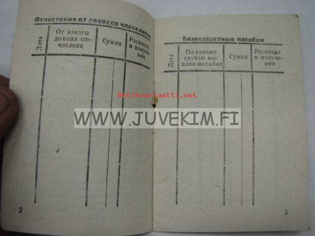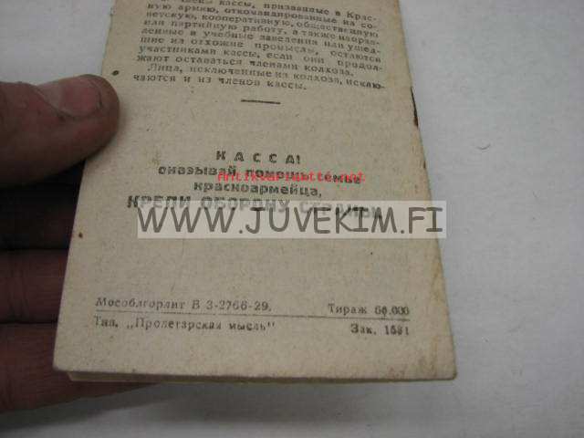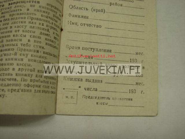 Tsenskaja kniska kassij... kolhosov -kolhoosilaisen tilikirja 1930-luku
