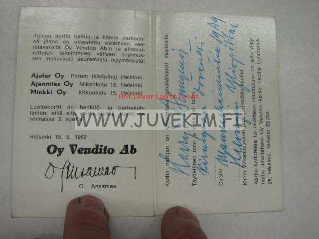 Oy Vendito Ab luottokortti nr 19288 Harry S. Blomqvist