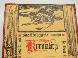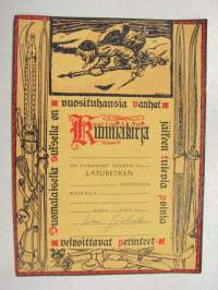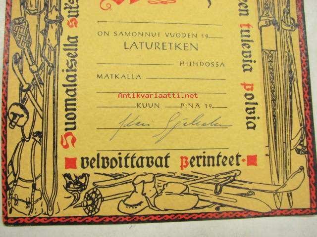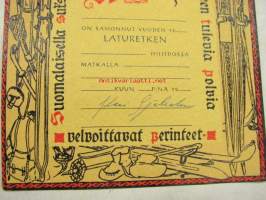1915 x 20 cm laturetkelle osallistumisen kunniakirja. Valmiiksi allekirjoitettu.