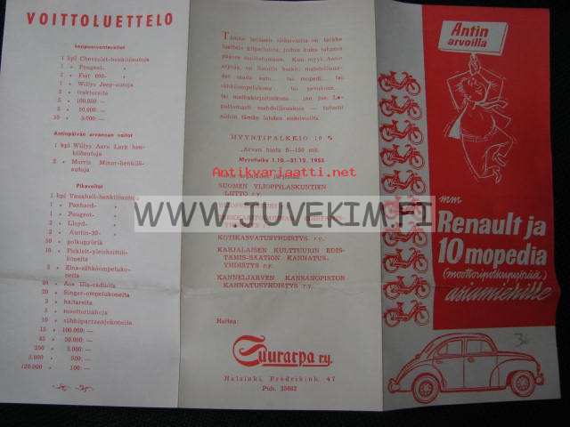 Suurarpa r.y. Voittoina Reunault ja 10 mopedia 1.10 -31.12.1955