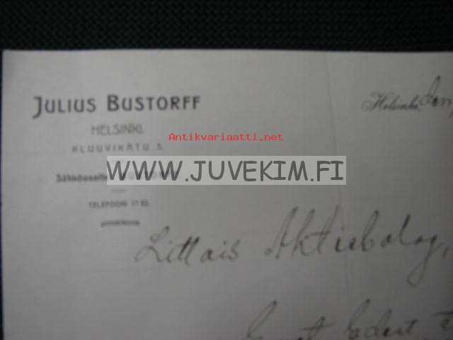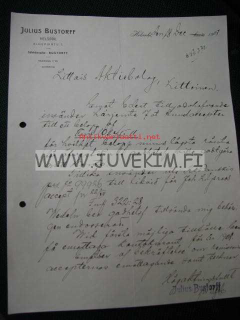 Julius Bustorff Helsinki 18.12.1908 -asiakirja