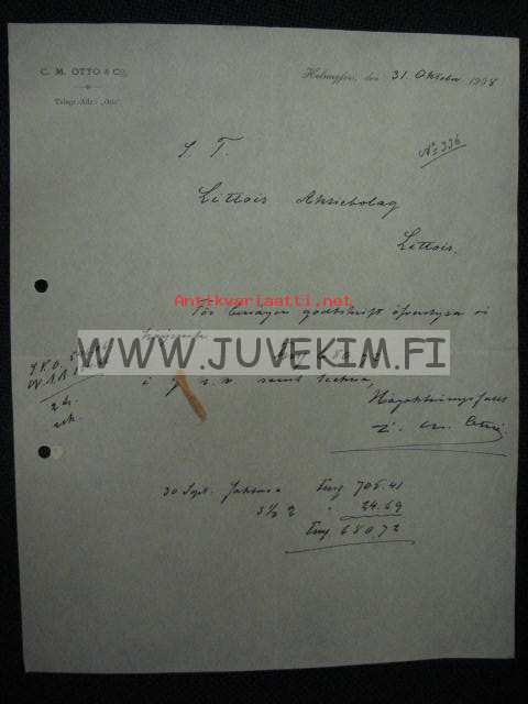 C.M. Otto & Co Helsingfors/Helsinki 31.10.1908 -asiakirja