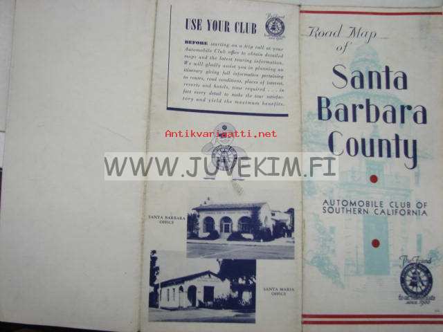 Santa Barbara County Road map (Automobile Club of southern California) -tiekartta