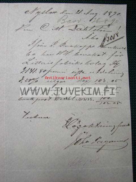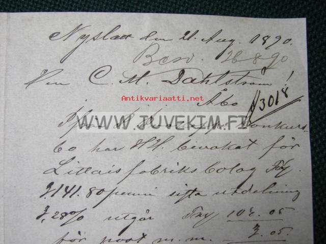 Nyslott 21.8.1890 dokument, asiakirja