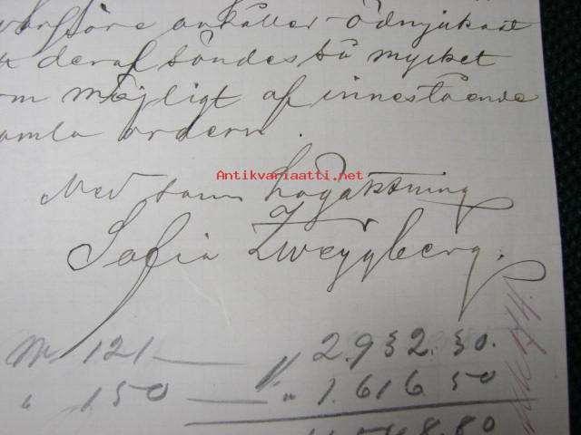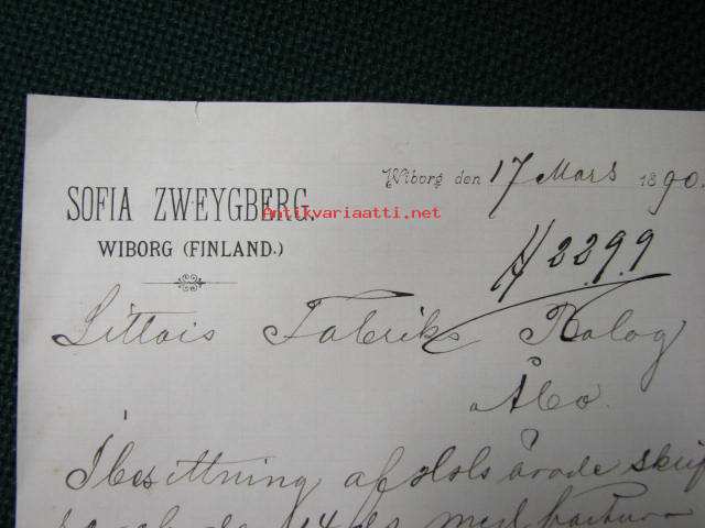 Oy Sofia Zweygberg Ab, Wiborg, (Viipuri) 17.3.1890 -asiakirja, dokument