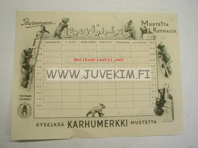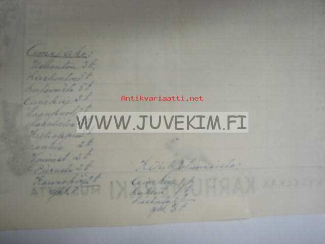 | Saatavilla | 1 kpl | | Julkaisuvuosi | 19 | | Sivuja | 1 | | Kunto | K2 | | Kielet | Suomi |