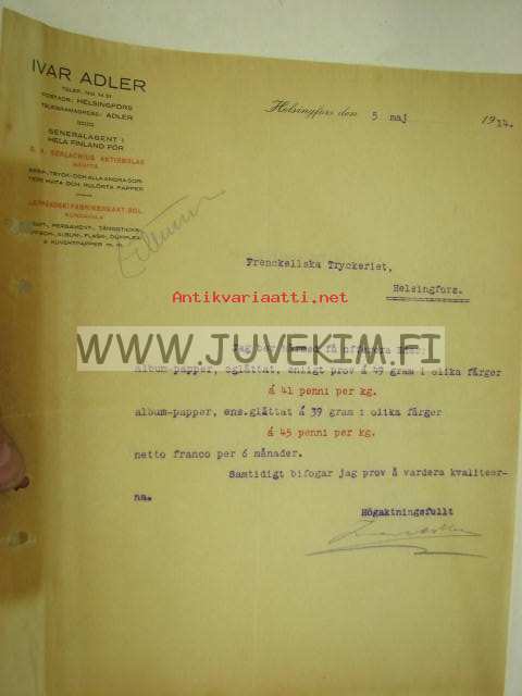 Ivar Adler, Helsinki 5.5.1914 -asiakirja