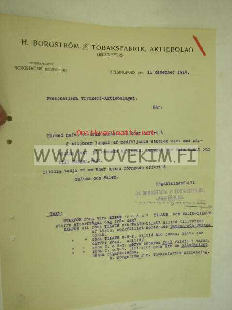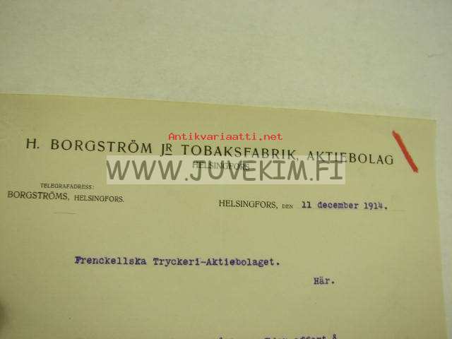 H. Borgström Jr Tobaksfabrik Ab, Helsinki 11.12.1914 -asiakirja