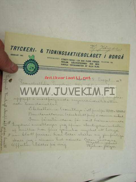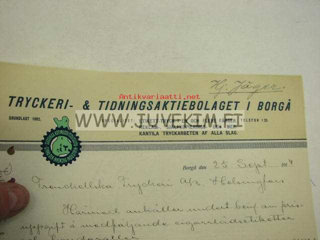 Tryckeri- & Tidningsaktiebolaget i Borgå (Porvoo) 25.9.1914 -asiakirja