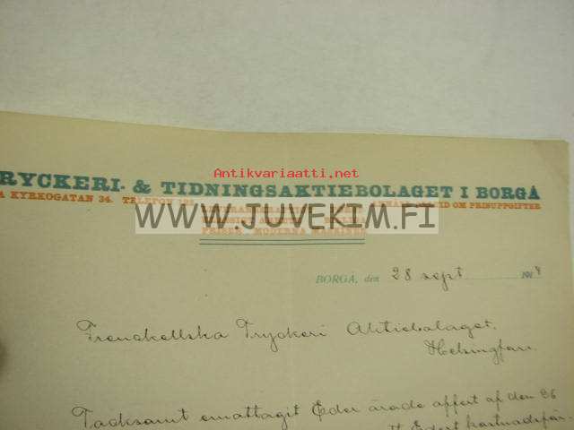 Tryckeri- & Tidningsaktiebolaget i Borgå (Porvoo) 28.9.1914 -asiakirja