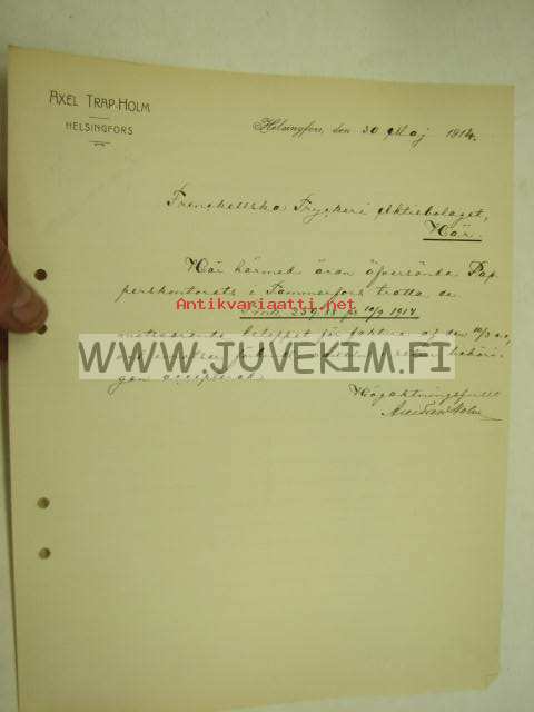 Axel Trap-Holm, Helsinki 30.5.1914 -asiakirja