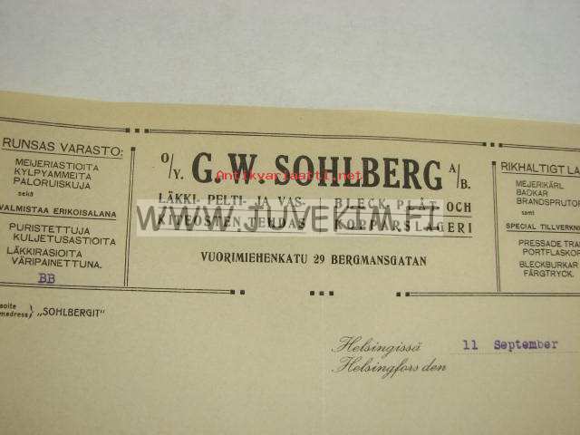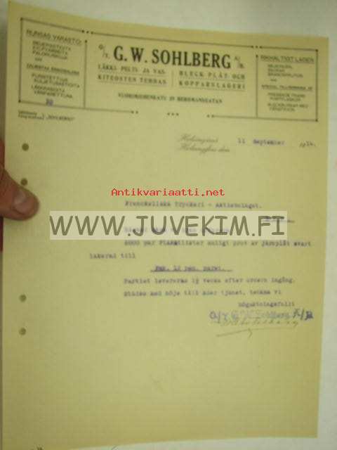 Oy G.W. Sohlberg Ab, Helsinki 11.9.1914 -asiakirja