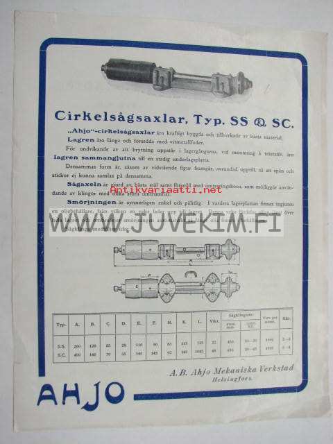 Ahjo Mekaniska Verkstad, 1923 x 28 cm asiakirja.
