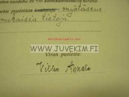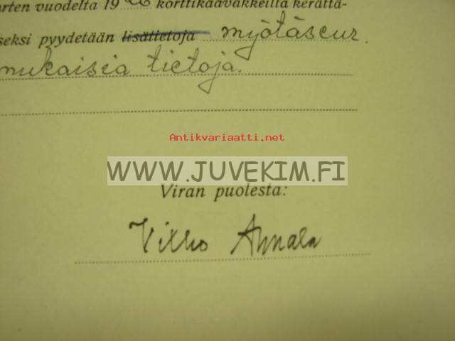 | Saatavilla | 1 kpl | | Julkaisuvuosi | 1927 | | Sivuja | 1 | | Kunto | K3 | | Kielet | Suomi |