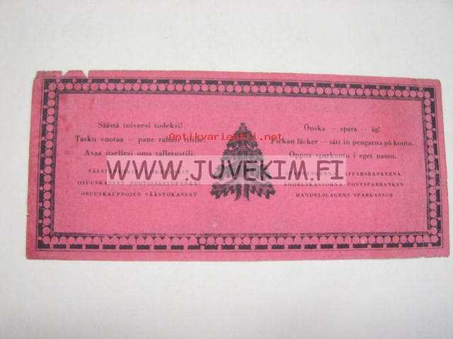 | Saatavilla | 1 kpl | | Julkaisuvuosi | 19 | | Kunto | K3 | | Kielet | Suomi |