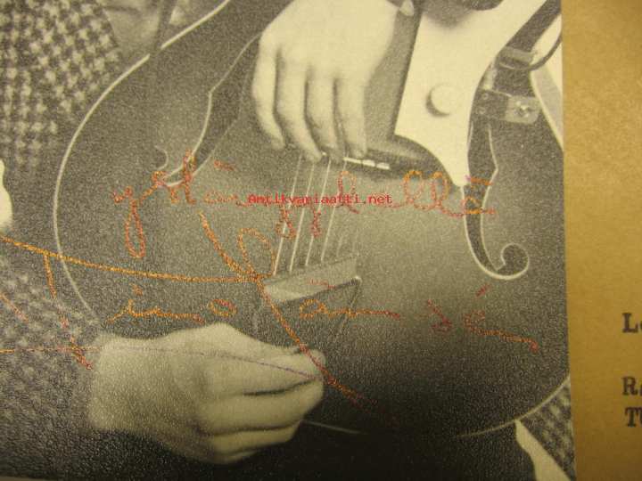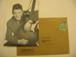 Timo Jämsénin "ystävyydellä" Leena Harkolalle signeeraama Scandia-musiikin ihailijakortti. Aito ja harvinainen.