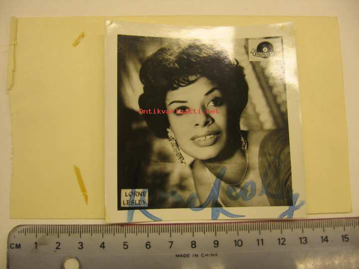 Nimikirjoitus ihailijakortilla. Aito, mustetta / tussia havaittavissa myös valokuvapaperin taustalla.