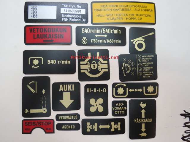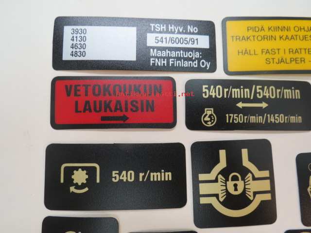 Ford 3930 4130 4630 4830, TSH Hyv. No. 541/6005/91, Maahantuoja FNH Finland Oy -traktorin alkuperäinen tarrasarja