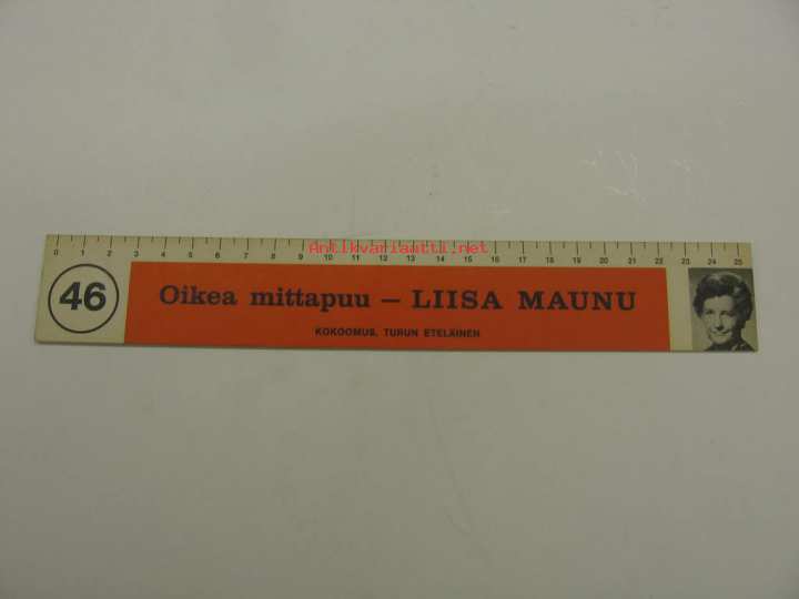 Oikea mittapuu - Liisa Maunu Kokoomus -vaalimainos viivoitin