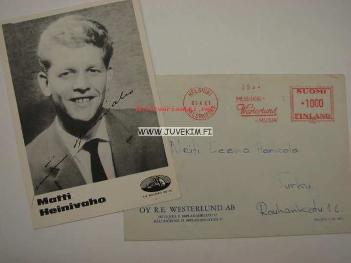 10 x 15 cm ihailijakortti, jossa aito nimikirjoitus.