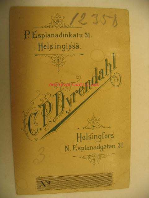 Visiittikorttivalokuva kuvaamo C.P. Dyrendahl Helsinki
