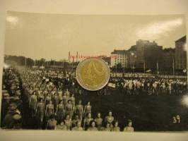 Noin 9 x 13 cm valokuva, postikorttiviivoitus taustalla.