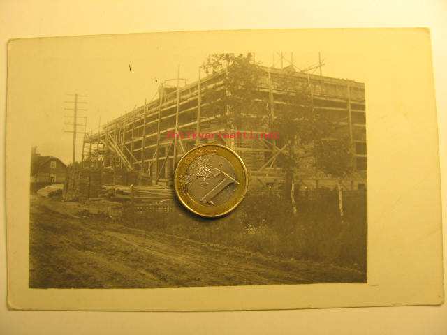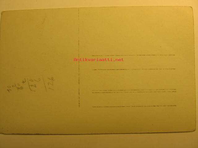 9 x 14 cm valokuva postikorttiviivoituksella, tunnistamaton rakennus.