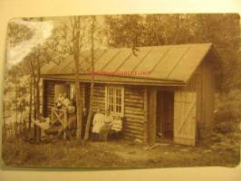 9 x 14 cm valokuva postikorttiviivoituksella aikansa kesämökki-idyllistä.