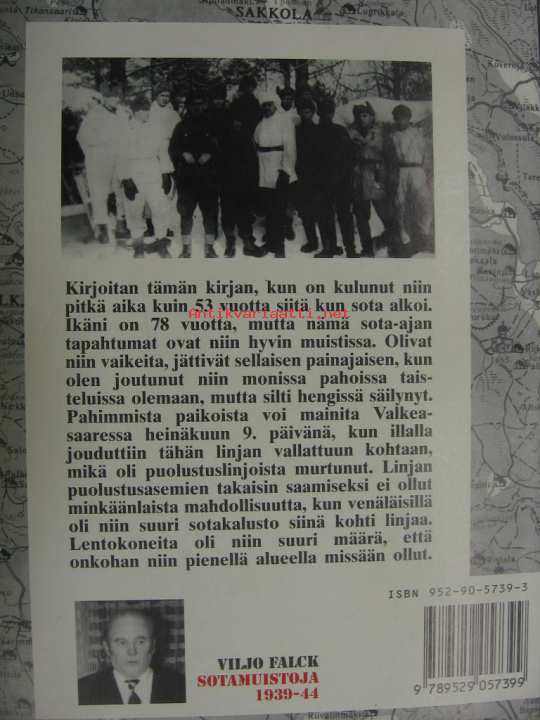 Viljo Falck kirjoitti tämän kirjan 50 vuotta sotatapahtumien jälkeen. Lue sodan kauhut kokeneen muistelmat varsinkin jos on tuttuja nimiä ja paikkoja seuraavassa: Alunperin kotipaikka oli Koivisto. Alku: Tiurin linnake 7.10.1939 Siirrot ja komennukset: pataljoona Häyrinen, 1 komppania. Taistelut: Tiuri , Körnikangas , Teikari , Vilaniemi, Valkjärvi, Kiviniemi, Lipala, Lempaala, Munakukkula, Valkeasaari Uusikerko, Viipurin asemasota E/II J.R 43 8/III/ J.R.1 10/j.R.58.