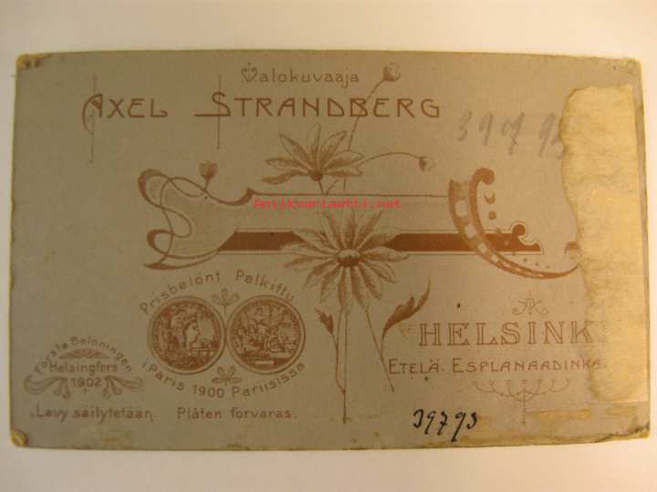 Axel Strandberg Helsinki/Helsingfors -visiittikorttivalokuva