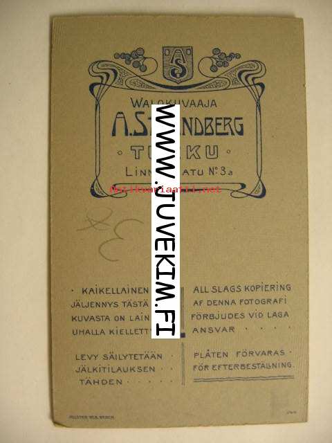 Pappiskuva A. Strandberg Åbo/Turku -visiittikorttivalokuva