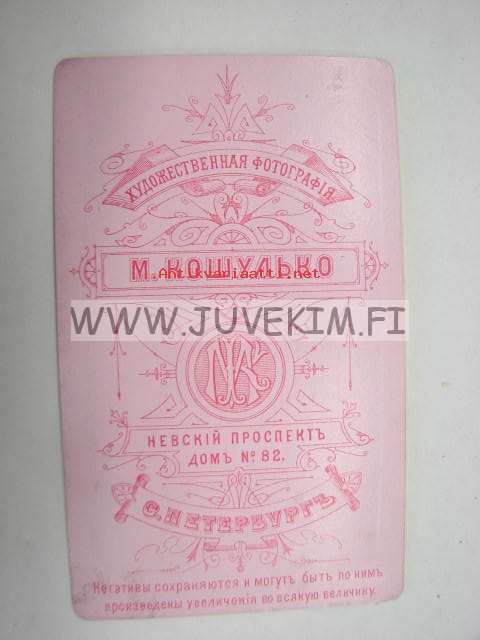 Herra -valokuva 1800-luvulta, valokuvaamo M. Kosulko, Pietari