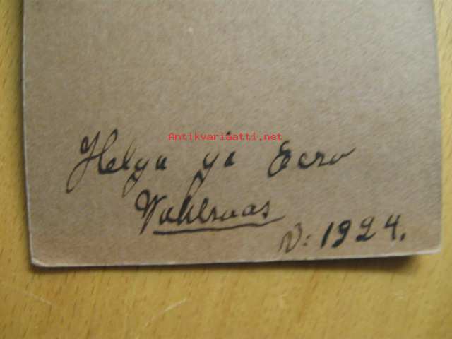 Koko 6,5 cm x 10,5 cm. Teksti Helga ja Eero ja epäselvää tekstiä.