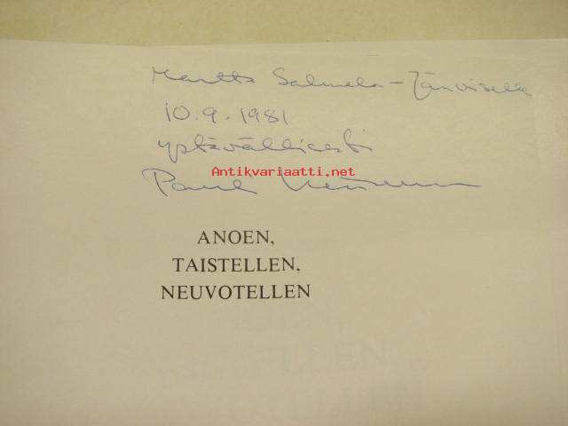 18 x 25 cm kirja. Tekijän omiste Martta Salmela-Järviselle.
