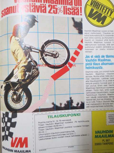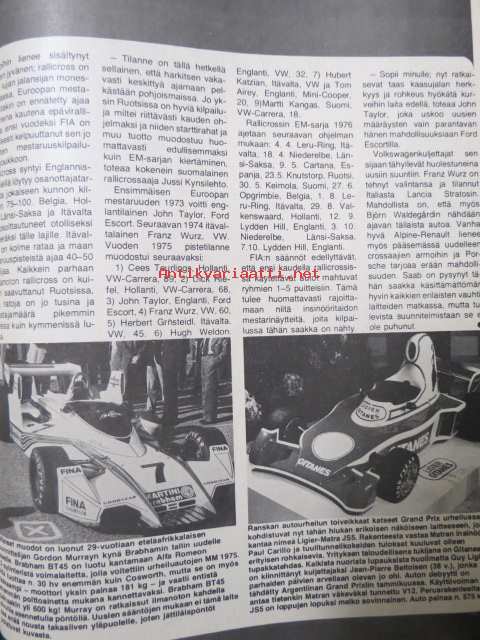 Vauhdin Maailma 1975 nr 12 RAC-ralli Timo Mäkisen Hat-trick, MZ, Ari Vatanen, Yrjö Vesterinen, Volvo -76, Varikon enkeleitä-onko heitä?