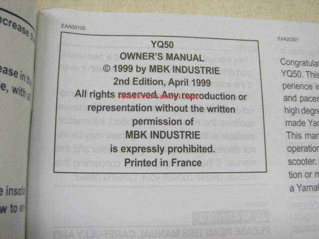 Yamaha AeroX YQ50 owner´s manual -omistajan käsikirja